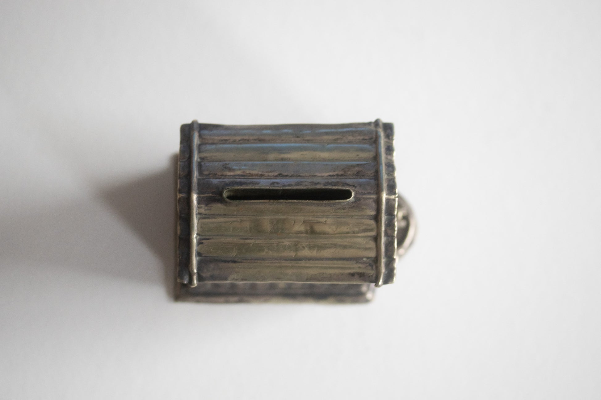 Die Spardose befindet sich in einem authentischen, unpolierten Zustand mit einer schönen, dem Alter entsprechenden Patina.