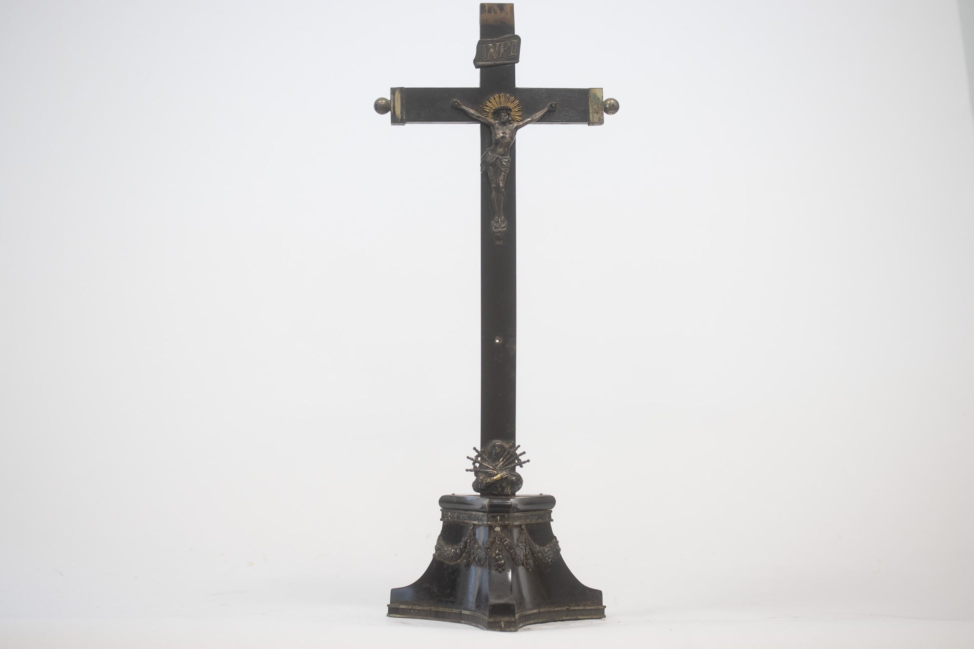 Kruzifix. Datiert 1870. 45 cm hoch. Oben fehlt ein Knopf.