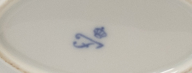 Porzellan mit Blumenmotiv. 22 x 15 cm Durchmesser. 6 cm hoch, ohne Griffe.