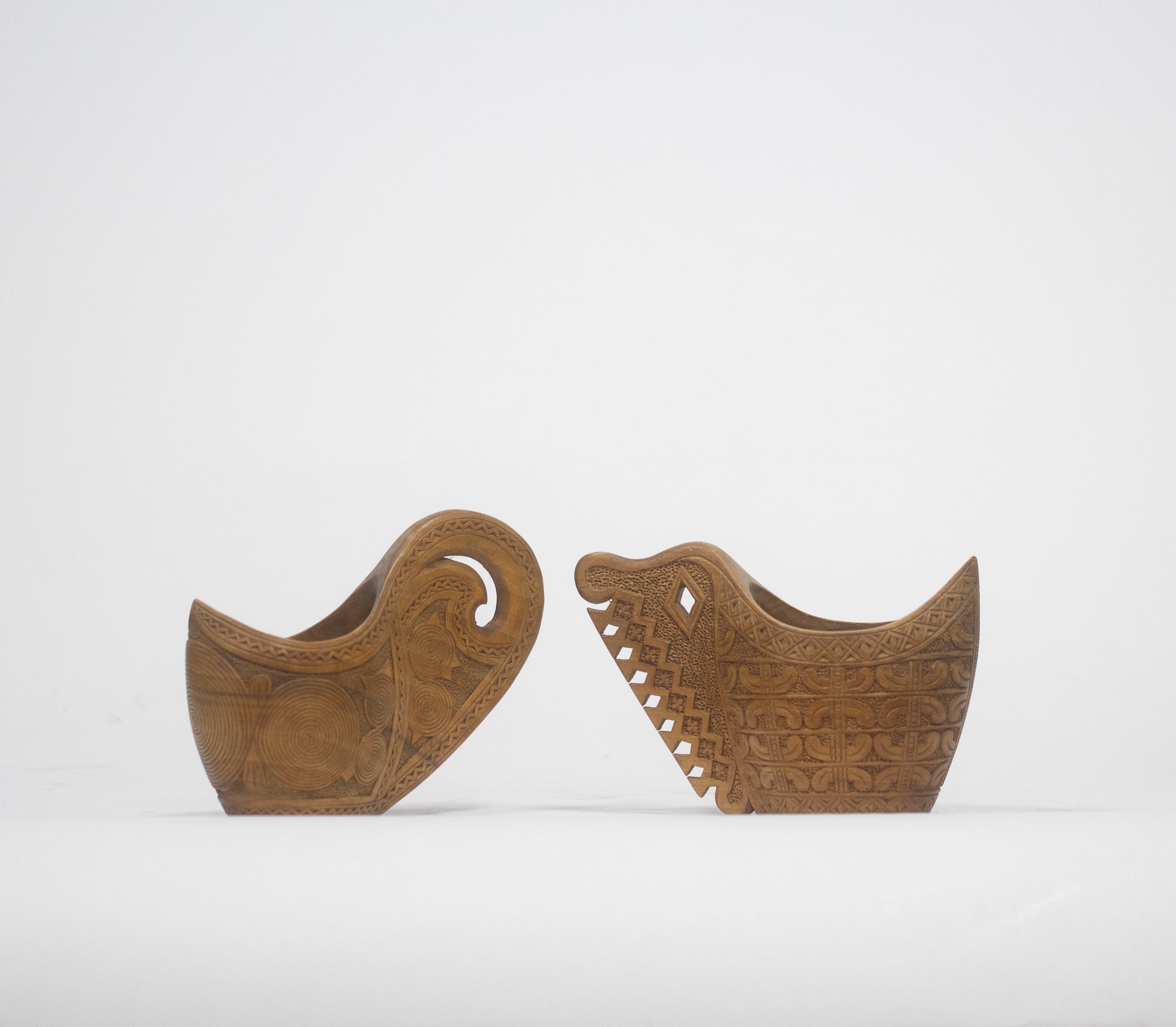 Zwei antike handgeschnitzte Hirtenbecher. 6-9cm hoch