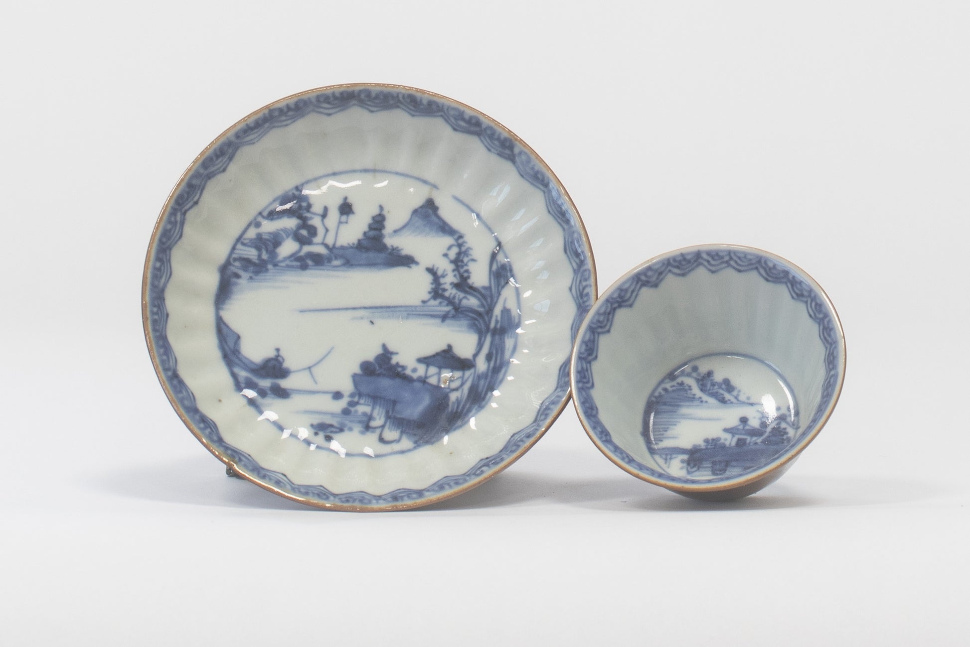 Blau-weißes und kapuzinerglasiertes Porzellan mit Blumen- und Landschaftsdekor. Chinesisch, 18. Jahrhundert. Höhe 4,5 cm