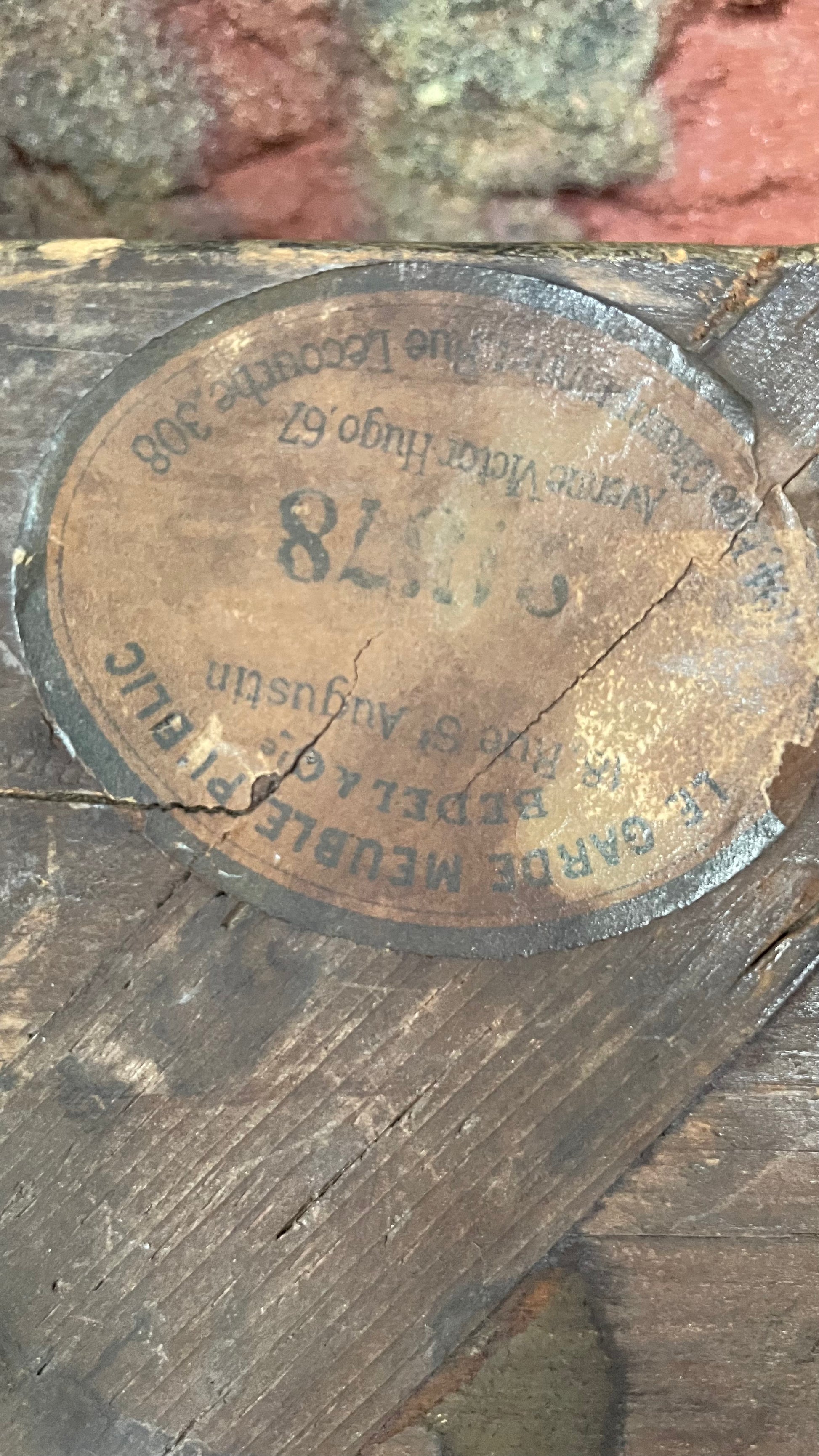 Proveniëntie (Herkomst): Op de achterzijde bevindt zich een origineel antiek etiket van Le Garde Meuble Public - Bedel & Cie uit Parijs. Dit wijst op een rijke geschiedenis en een verblijf in een voorname Franse collectie of inboedel.