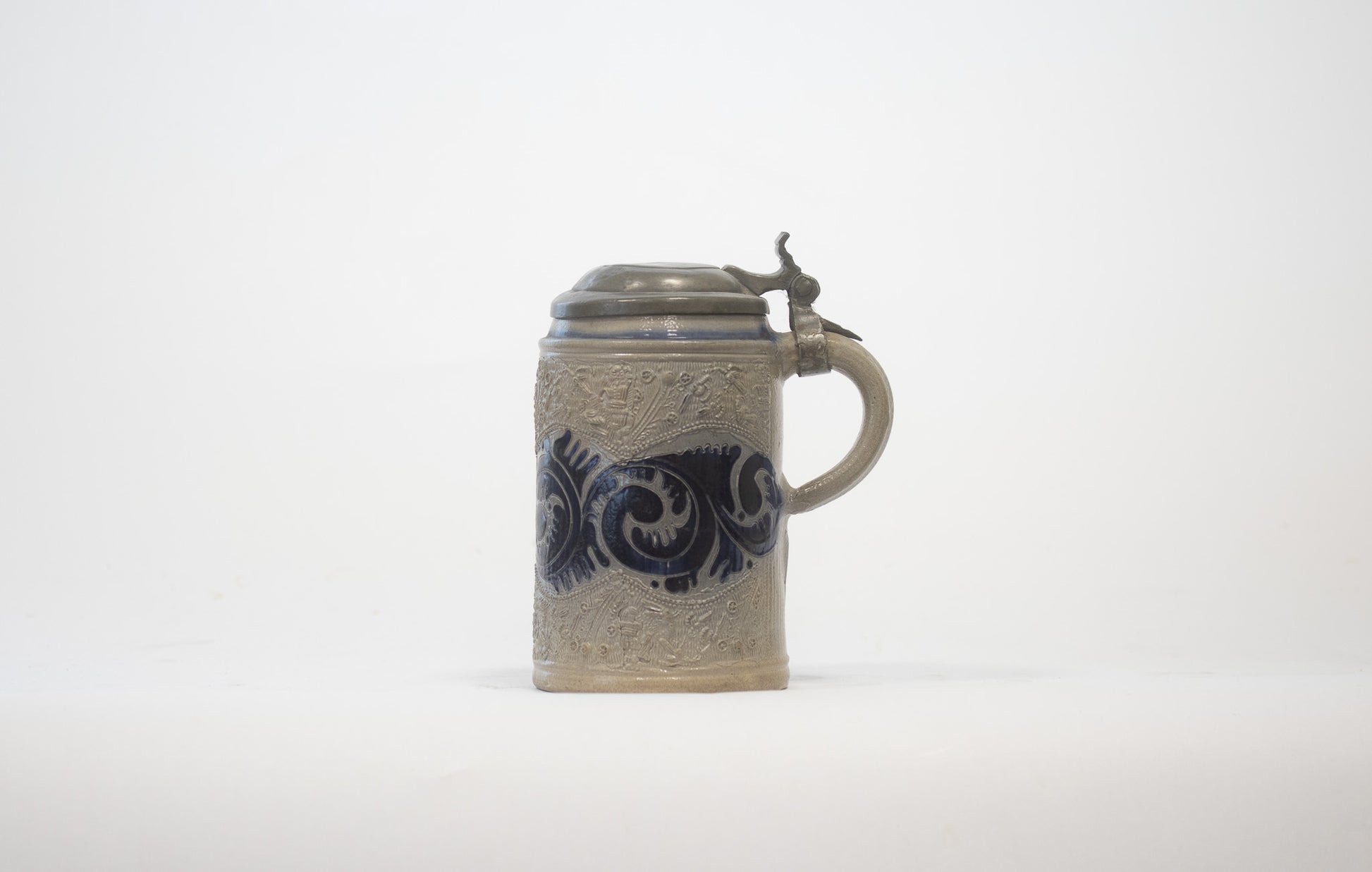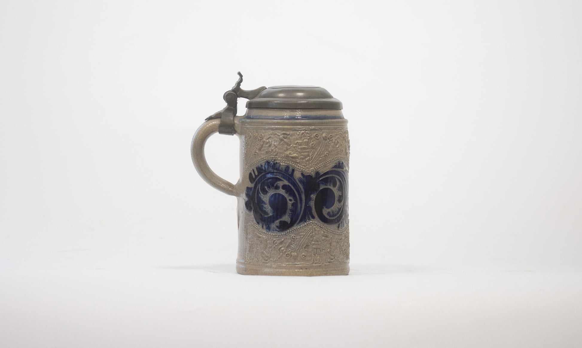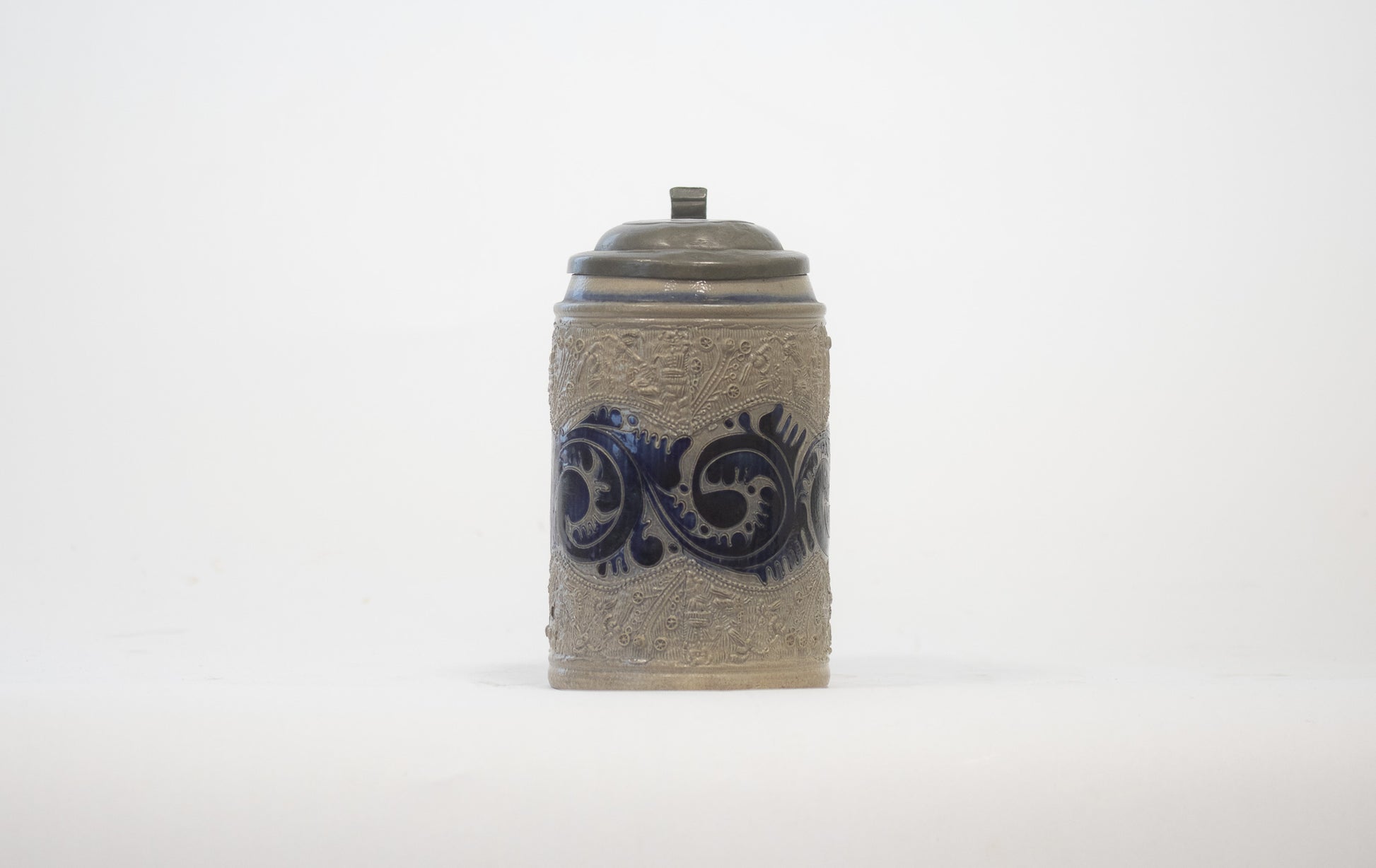 met tinnen deksel. 16,5cm hoog. 9,5cm doorsnee.